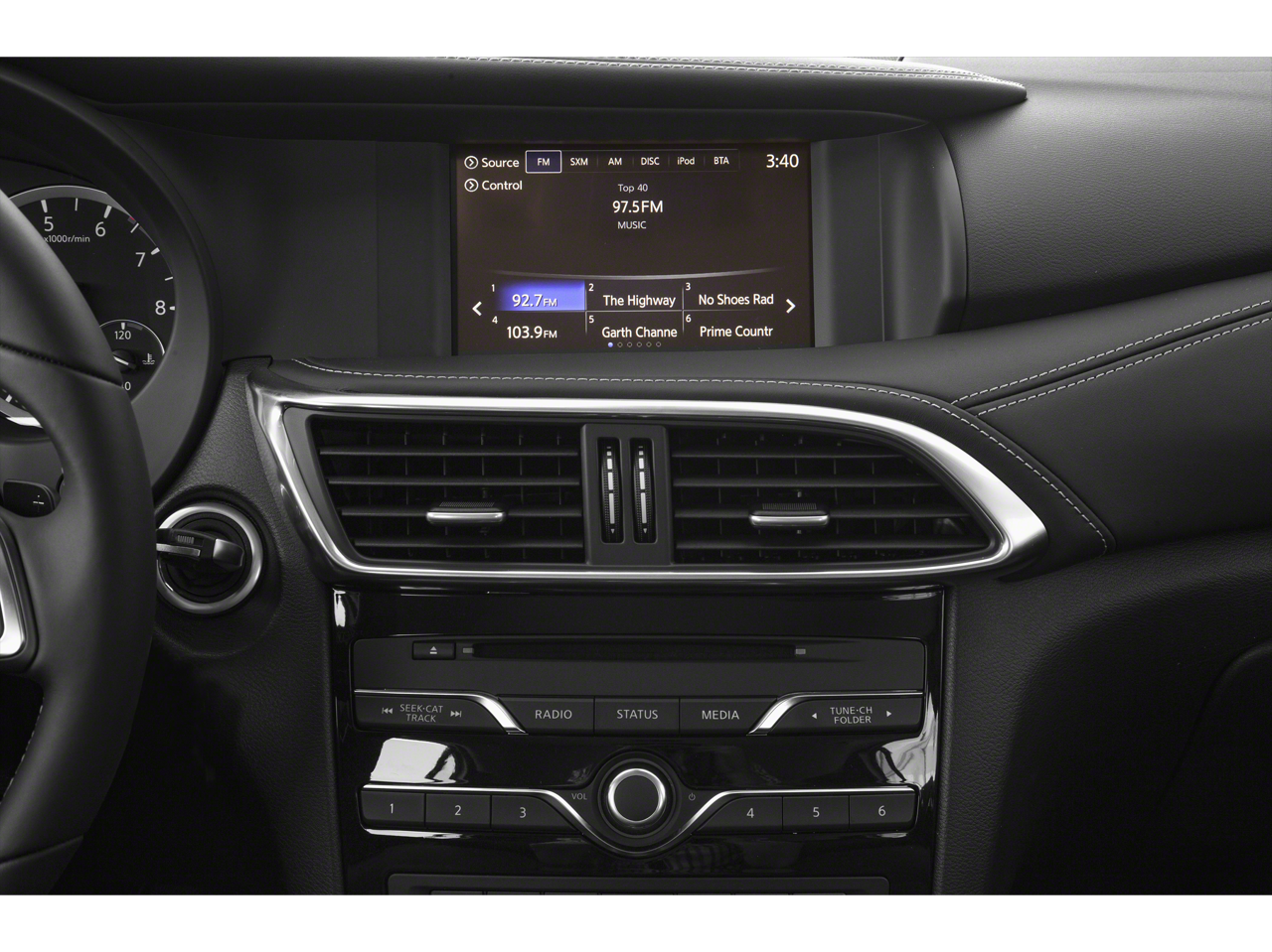 - Radio: AM/FM/CD/HD/SAT Audio System -inc: 6-speakers, 2 USB ports, Bluetooth® hands-free phone, audio streaming, INFINITI InTouch including 7" touch screen, SiriusXM radio w/90-day complimentary trial, SiriusXM Travel Link w/4-year complimentary trial access to weather, fuel prices, stocks, sports and movie times and INFINITI voice recognition Satellite radio service is not available in Alaska and Hawaii.